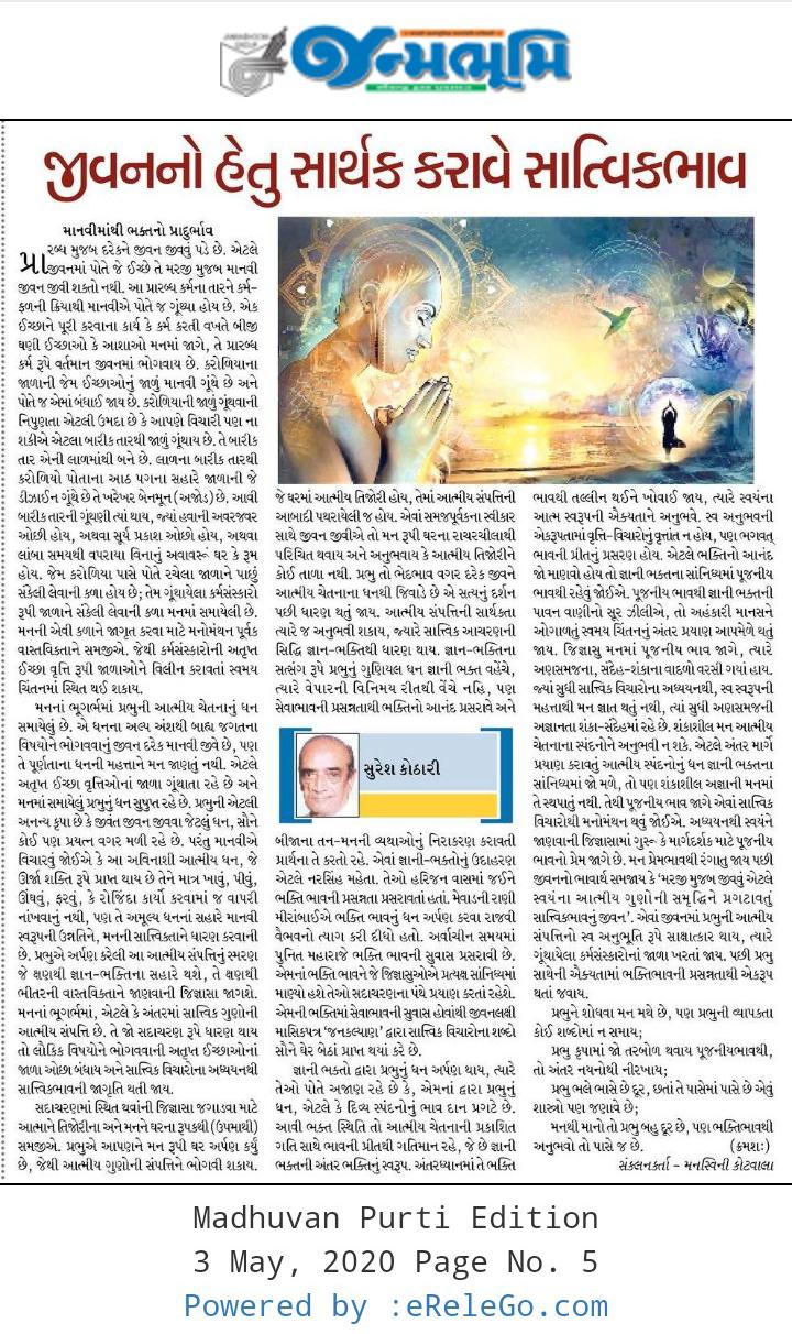 જીવનનો હેતુ સાર્થક કરાવે સાત્ત્વિકભાવ