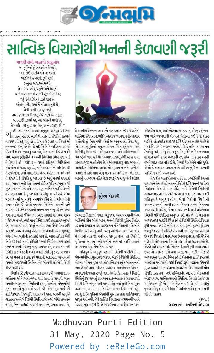 સાત્ત્વિક વિચારોથી મનની કેળવણી જરૂરી