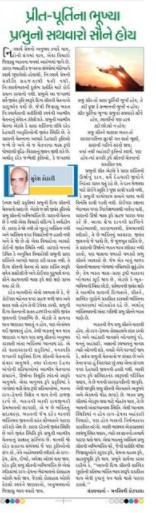 ભક્તની જેમ પ્રભુ પ્રીતને માણવી હોય, તો રાગ-દ્વેષના કોલાહલને શાંત કરવો પડે અને અહંકારી માનસને ઓગાળવું પડે. મનનું અહંકારી, અજ્ઞાની સ્વભાવનું માનસ ત્યારે ઓગળી શકે, જ્યારે એને પરખાઈ જાય કે, સર્વત્ર પ્રભુની ચેતનાનો જ સંચાર છે અને તેનાં વગર હું નિરાધાર છું તથા એનાં સંગાથ વગર દેહધારી જીવનની હસ્તી નથી. આવી પારખ રૂપે સચ્ચિદાનંદ સ્વરૂપથી પરિચિત થવાય, તે છે મનની શરણાગતિની જાગૃતિ. એવી જાગૃતિ પ્રભુ પ્રીતની ઐક્યતાને અનુભવે અને એકમનો મોહ લગાડે છે. ભક્ત પ્રભુ પ્રીતમાં એકરૂપ થવાં માટે મોહાંધ થાય, તે છે ભાવની અંતરધ્યાનસ્થ સ્થિતિ. એવી ધ્યાનસ્થ સ્થિતિમાં ન હોય રાગ-દ્વેષના અહંકારી વિચારો, પણ હોય ભાવની નિર્મળતાના પ્રકાશિત તરંગો. આવી ભાવમય એકાગ્રતામાં સ્વયંભૂ સ્થિત થવાય, ત્યારે સ્વ જ્ઞાનનો તત્ત્વાર્થ ધારણ થતો જાય. એવાં ભક્તનું અસ્તિત્વ પ્રભુ પ્રીતની અભિવ્યક્તિ ધરે, જેની પ્રતીતિ બીજા જિજ્ઞાસુઓને કરુણા રૂપે, પ્રેમનાં વહાલ રૂપે, સહાનુભૂતિ રૂપે થાય. પ્રભુને પ્રાર્થના કરતાં રહીએ કે, "આપની દિવ્ય પ્રીતની સત્ત્વિક ગુણોની પ્રતિભા ભક્તિ ભાવ સ્વરૂપે પ્રકાશિત થાય એવી કૃપાનું ધન શ્ર્વાસે શ્ર્વાસે ધારણ કરાવો.”